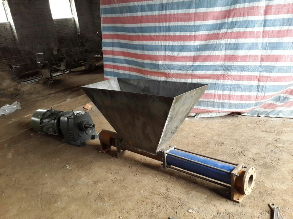 我公司为沈阳的一位客户专门定做一台G85-2 单螺杆 泵 ,客户要求可以输送一些石灰里面含有一些泡沫型介质,可调速并且要求是大漏斗式,公司为这位客户配的变频电 机加变频器。